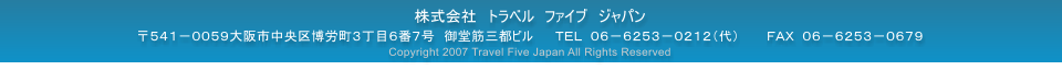 株式会社トラベル ファイブ ジャパン 株式会社トラベル ファイブ ジャパン 国際奉仕活動の旅、海外ボランティア体験学習(スタディツアーやワークキャンプ)、国際交流の旅など、 トラベルファイブジャパンは様々なボランティアツアーをお手伝いさせていただいています。  出発地から目的地までの適切な航空券の手配、渡航に関連する諸手続きのお手伝い、経由地あるいは 都市部での宿泊・現地交通手段の手配など、旅を通じて私たちができるボランティアを実現しています。  これからもトラベルファイブジャパンは、ボランティアに出かけて国際交流を深める「旅」を応援します。 海外ボランティアや国際交流の旅について、まずは気軽にお問合せください。 ■ ボランティアツアー CLICK ↑ 公益社団法人アジア協会アジア友の会 観光庁長官登録旅行業第823号     日本旅行業協会正会員  支援システム会員